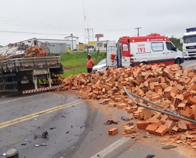 De acordo com a Polícia Rodoviária Federal (PRF), por volta das 7h20, um caminhão que transportava blocos para construção colidiu com dois veículos de passeio. A polícia disse que a batida foi frontal, mas não há detalhes das causas, nem de como ocorreu o acidente.