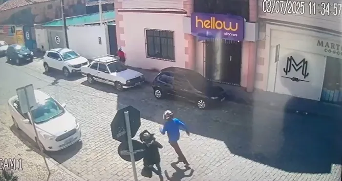 Câmeras de segurança de estabelecimentos comerciais da região registraram parte da movimentação. As imagens já estão em posse da Polícia Civil e mostram pelo menos três envolvidos: os dois assaltantes na moto e o motorista do carro de apoio.