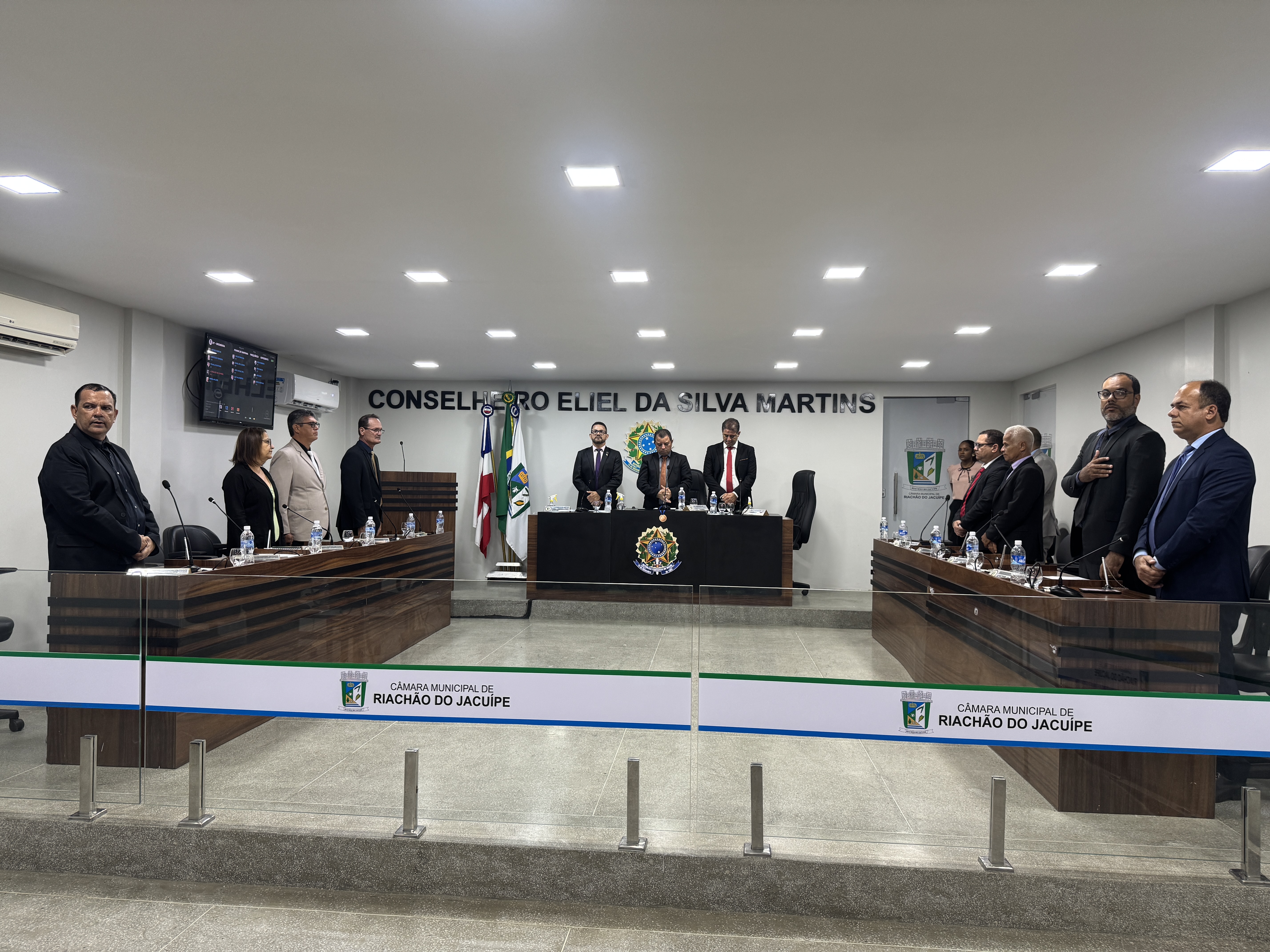 A abertura foi marcada pela execução dos hinos Nacional e Municipal. Dos 13 vereadores, 12 estiveram presentes; apenas o vereador Joquinha não compareceu.