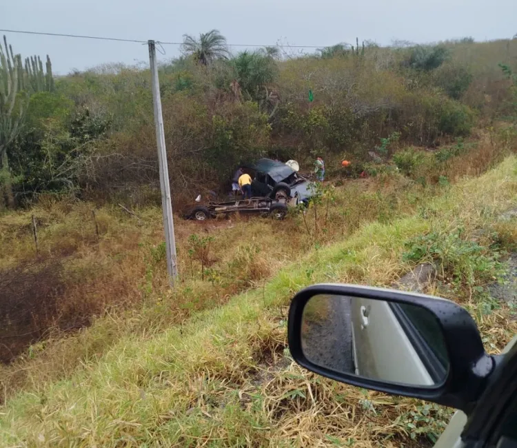Na manhã deste sábado (27), uma caminhonete modelo D-20, carregada com roupas, capotou na rodovia que liga Cansanção a Nordestina, no interior da Bahia, deixando três homens feridos.