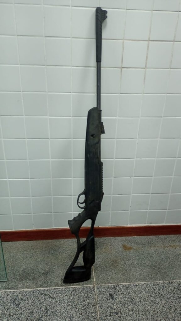 Durante a revista, os policiais encontraram cinco aparelhos celulares, duas galinhas, documentos de veículos (CRLVs), uma espingarda de ar comprimido calibre 5.5 da marca Rossi e o Chevrolet Onix, de placa PQL2F72.