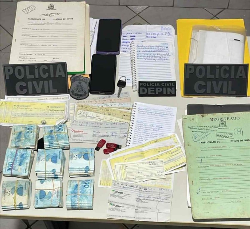 Durante os trabalhos, foram apreendidos diversos itens que serviam como garantia para os empréstimos ilegais, como notas promissórias, cheques, escrituras de imóveis, além de uma motocicleta e uma significativa quantia em dinheiro, fruto da atividade criminosa.