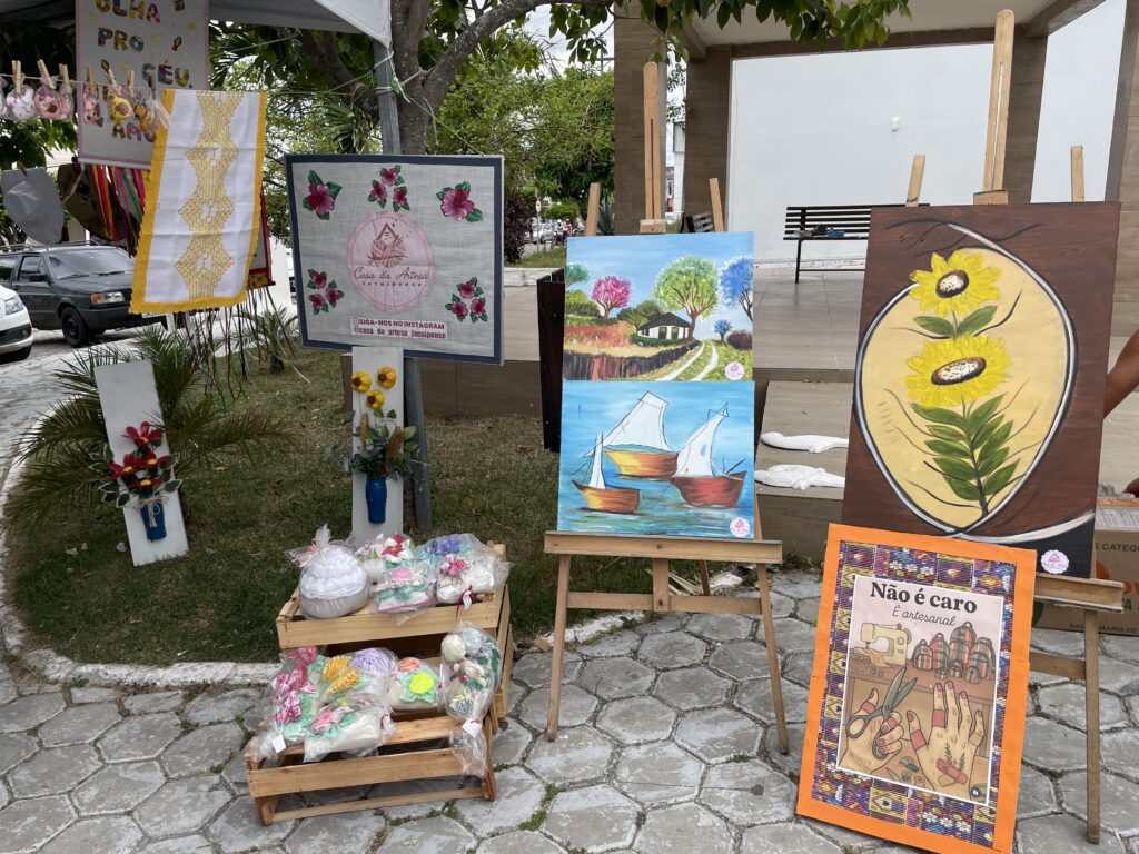 Entre os expositores, estiveram representantes da Casa da Artesã Jacuipense, integrantes da Colônia de Pescadores Z-71 — com destaque para a produção de biojoias —, além de uma exposição de telas confeccionadas por assistidos do Centro de Atenção Psicossocial (Caps).